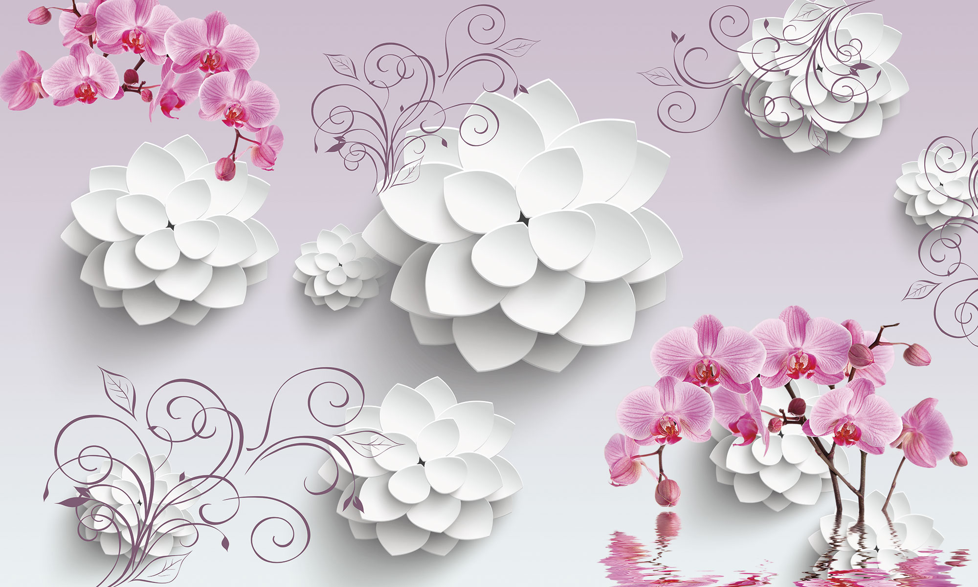 Белые цветы и орхидеи